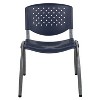 When you need to seat guests in your hair salon, barbershop, tire or body shop this plastic stack chair will bring comfort to guests waiting for service. Guests will love the wider seat design that is curved for comfort. The innovative ergonomic design provides angled seating for your visitor's to comfortably recline while reading a book or scrolling through their phone. Setup training rooms using stackable plastic chairs to be placed around training tables. When you arrange for guest speakers in your classroom or community center, place several plastic chairs in a row. The stacking chair features a perforated back, textured seat to sit safely and a titanium gray finished powder coated metal frame that holds up to 880 pounds. Whether you need to furnish a small or large business there's no job that this heavy-duty plastic guest chair won't be able to handle. these navy plastic stack chairs stack up to 25 chairs high and can be transported across the facility on our steel stack chair and church chair dolly.