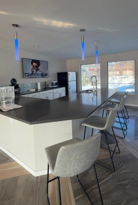 [This review was collected as part of a promotion.] Just (mostly) finished remodeling my kitchen and painted it pewter with green accents and these Flash Furniture - 24 inch LeatherSoft Counter Height Barstools in Gray, Set of 2 were the perfect complement! They easily replaced my backless stools and provide a sturdy, stylish and comfortable upgrade. VERY easy to assemble and wipe clean.
