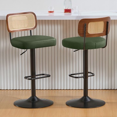Provide the perfect pop of color and on-trend appeal in your home with this green adjustable barstool. This modern style stool has a gracefully contoured shape and mid-back design that offers the perfect amount of support guests. The armless design brings you closer to your dining table, card table or basement bar. This dual-use stool gives you two chairs for the price of one. The height adjustable swivel seat adjusts from counter to bar height with the handle located below the seat. The pedestal base supports up to 330 lbs. weight capacity to accommodate most users while the chrome footrest supports your feet and promotes good posture. Spills and other pesky messes clean up quickly with water and a neutral detergent. To help protect your hard flooring surfacess, the base features an embedded plastic ring. Purchase several of these adjustable stools to ensure you always have plentiful seating for guests. Additional Features: Height Adjustable Seat with Gas Lift adjusts from bar to counter height, Armless Design brings you closer to dining and activity surfaces to help prevent slouching, Footrest Relieves Pressure From the Legs to provide a better sitting experience, Classic Chrome Pedestal Base Diameter: 17.625", Swivel barstool ideal for kitchen island, pub height dining tables or your home bar