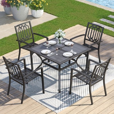 Flash Furniture Oia Commercial Grade 28" Square White Indoor-Outdoor Steel Patio Table Set with 4 Square Back Chairs