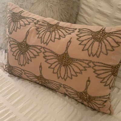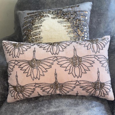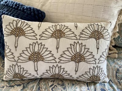 12"x20" Sofia Beaded Flowers Lumbar Throw Pillow Off White - Mina Victory: Handmade, Bohemian Style, Indoor Use, Zippered