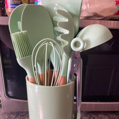 MegaChef 12 Piece Mint Green Silicone and Wood Cooking Utensils