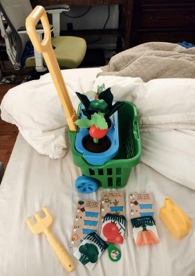 [This review was collected as part of a promotion.] The Let's Explore Deluxe Gardening Set is the perfect gift for both my 18-month-old son and 3.5-year-old daughter. They love assembling the plants and pretending to harvest the veggies! When I showed my daughter how to take the seed pods out of the packets and "plant" them in the soil pod pockets, she was so excited! She picked up the watering can, watered the seeds, and then I showed her how to assemble the veggies in the soil (vine with tomatoes, carrot stalk, and broccoli). There's velcro on each part so it's easy for a kid to replicate. There's an illustrated guide for each veggie with instructions that are easy for kids to follow. There are labels you can insert in front of each soil pocket (in the blue canister on the basket). The rolling basket is incredibly amazing because it holds everything! It's ultra-durable and can even be used to carry or store other toys. The handle on the basket expands out, so your kid can pull it as they walk around (perfect for travel). All of the parts of this toy set are easy to wipe down or hand-wash if they get dirty. I highly recommend this toy for anyone's kids!