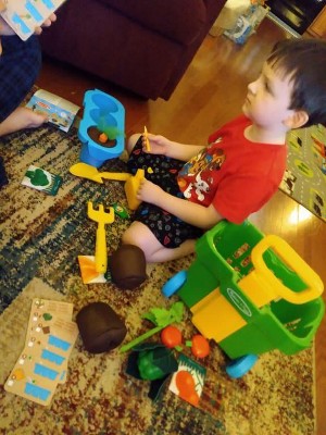[This review was collected as part of a promotion.] My son loves playing gardening while playing outside. This is such a fun & creative little set that helps little ones understand how vegetables are made and how to grow them. It comes with a step by step guide for each vegetable, which is also a great learning experience. He's learning while having fun and doesn't even know it, he's just thinking "my mom is playing with me and we're having fun" every Melissa and Doug product I own the quality is just outstanding. I love that they incorporate real life into play.