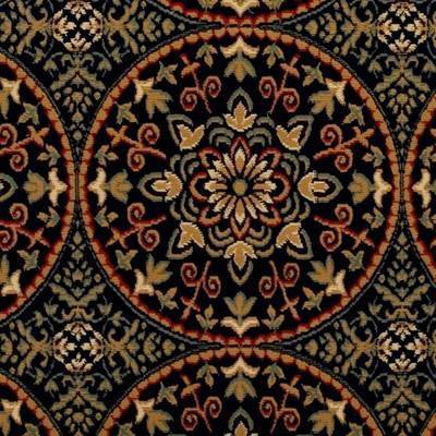 • A: Hi, The Medallion Area rug features a circular floral design in lively colors that form a fantastic symmetric layout sitting over a rich, black color foundation.