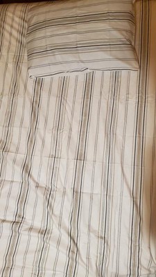 [This review was collected as part of a promotion.] A refreshing way to jazz up the bed during the day. Just in time for our first time holiday guest tour of the house. The quality is great! The duvet had the right thickness to be comfortable under. Beautiful colored stripes real appealing design.