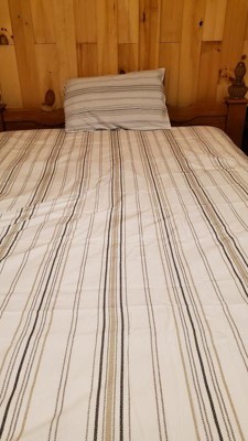 [This review was collected as part of a promotion.] I love the Simply Put 3-PC King Stripe Print Duvet Set. This set blends in perfectly with my home decor and I love that it fits my duvet. This duvet cover is soft and comfortable and I love that it has big sturdy buttons at the bottom. The pillow cases are awesome too. I would recommend this bedding set to anyone looking for one.