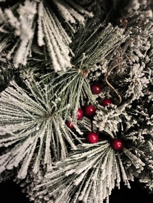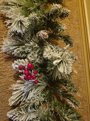 NOMA 9 Foot Pre-Lit LED Flocked Berry Christmas Garland Holiday Decor with Battery-Operated Lights, 35 Warm White Bulbs, 162 Pine Tips