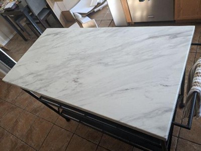 It's a solid island. It adds a lot of storage to our kitchen and is just the size we needed. The faux marble top looks really nice, much better in person than in the photos online - we will see how it holds up. I am happy with this purchase it gives me the look I wanted at the price point I could afford.