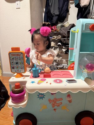 Kids love the ice cream truck, fun interactive play and a lot of colorful pieces. I wasn’t aware of the interactive touch pad. However the stickers to decorate the truck do not stick so well. No problem just put some tape but I don’t like that I have to do that. Other than that it’s a fun toy for the kids!