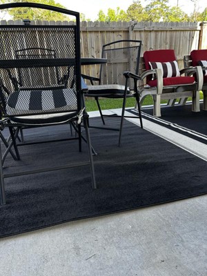 Designed for busy, active lifestyles, this black outdoor rug from the Nourison Essentials Collection is the ideal pairing of style and practicality. The simple, solid pattern is enhanced with subtle tonal variations and a surprisingly soft texture that’s equally suitable for any room inside the home. Place in any room as a standalone foundation for your décor or use as part of a layered rug look. Machine-made with a low-profile construction from easy to clean polypropylene yarns, this modern rug easily withstands heavy traffic and does not shed. Hand washable outdoors only: rinse with a hose and air dry.