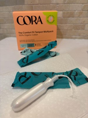 [This review was collected as part of a promotion.] I've been wanting to make the switch to 100% cotton tampons and after receiving Cora I will officially make the switch. It is just so much better for your body. They are very comfortable, easy applicator and perfect petite size packaging to toss in your purse easy extend plunger once you hear the click you are all good to go! 8 hr max both regular and super in this box! Love it!