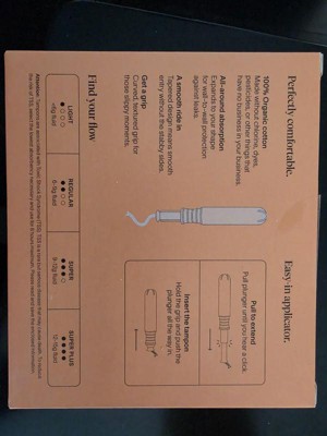 [This review was collected as part of a promotion.] So- these organic cotton tampons come in a pretty box. They are easy to open packages individually. But that’s honestly where what I liked about these ends. These came at just the right time- but- the applicators are absolutely awful. They don’t pull out all of the way. It took several time of pulling it apart and having to rethread the rope back in and very VERY carefully using with almost no pressure leading to improper placement. Also- being organic cotton- the amount of plastic and other materials used that are not natural just makes this a product not for me. When I was able to place one into the proper position it was without the applicator and that hurts. Also- it didn’t absorb well. If you are ok with fumbling with applicators and don’t mind the rest- I guess give them a try. They aren’t cheap though.