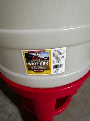 [This review was collected as part of a promotion.] This 10 gallon waterier is amazing and will work great for us during the hot summers in Texas. It’s easy to clean , empty and refill and is made of a heavy duty plastic. So far we have not had any leaks or issues with it and the chickens are loving it.