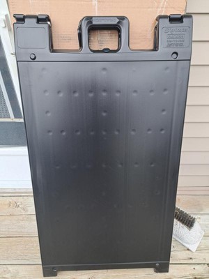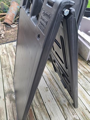 [This review was collected as part of a promotion.] Plasticade Signicade Portable Folding Plastic A Frame Sidewalk Store Sign Stand Is perfect sign for just about anything, it’s large and very sturdy easy to set up and easy to store, it is a little larger than I need but gets the information out to passersby’s
