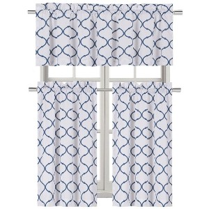 Kate Aurora Living Shabby Trellis 3 Piece Café Kitchen Curtain Tier And Valance Set - 56 in. W x 36 in. L, Navy