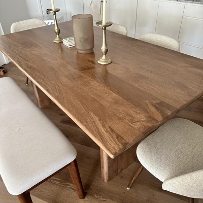 Love this bench! We use minimally because we keep it to the side unless we have guests- but always get compliments on the comfort and look