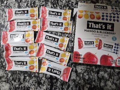 These Mango Blueberry fruit bars are so good. A new flavor for me. The price was right, they arrived on time, and I would recommend this seller.