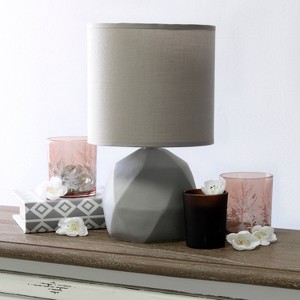 This mini lamp features a gray concrete geometric base and a gray fabric drum shade. It is a lovely, inexpensive, and practical table lamp to brighten up any of your spaces in style! This modern styled 10.60" lamp would be perfect for any living room, bedroom, office, kids room, or college dorm!