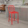 Product Name: Emma and Oliver Commercial Grade 24"H Red Metal Indoor-Outdoor Counter Stool w/ Slat Back