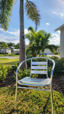 Emma and Oliver Aluminum Indoor-Outdoor Stack Chair with Triple Slat Back and Arms