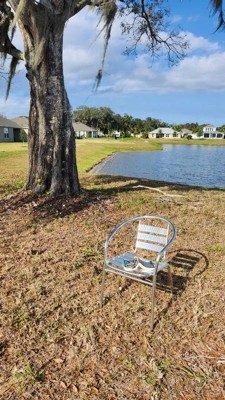 [This review was collected as part of a promotion.] Love this lightweight aluminum chair. Easy transport chair is great for just comfortable seating it's contorted to fit the body just right. The best part is you can wipe it off easily this chair will stand up to the elements it's constructed of aluminum which lasts a lifetime