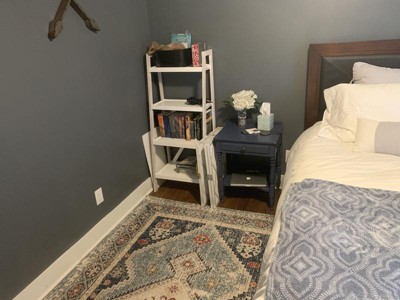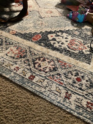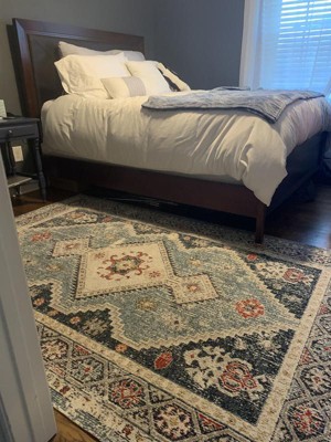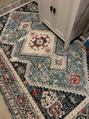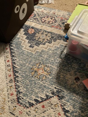[This review was collected as part of a promotion.] I’ve had this rug for about a month now and have been happy with it so far. The colors and the pattern are really cute and could go with a variety of different spaces. I have this in my guest room. You definitely need a rug pad underneath because it is fairly thin and will slide if you don’t have something under there. If you are looking for something plush this wouldn’t be your choice but is great for what I needed if for! I also have a large dog and this has cleaned up nicely and the pattern hides dirt well so you don’t feel like you need to vacuum all the time.