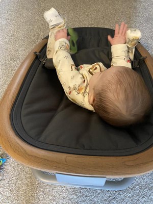 [This review was collected as part of a promotion.] My little one is almost 4 months old and officially in the “I want to see the world!” phase. The Maxi Cosi Kori Rocker, which I received from the Stellar Product Testing Panel, has provided the perfect spot for him to hang out and take in all the action. He enjoys the upright view, and I enjoy having a safe place to set him down where he feels totally happy. It’s also surprisingly lightweight! My husband, in-laws, and I move it around the house everywhere we go. It’s given us so much more freedom within our home, and has granted our baby his own independence while still keeping him close. We use it during playtime, cooking, eating, or folding laundry… and it’s been an unexpected MVP when one of us is solo parenting and, inevitably, nature calls. I appreciate the rocker’s stylish, thoughtful design — totally in line with what I’ve come to expect from Maxi-Cosi. The woodgrain pattern against the dark fabric looks so chic, and I appreciate the dual adjustable buckles and fully removable, washable seat cushion. The 2-in-1 functionality gives us a lot of versatility depending on the activity or mood of the moment. The rocking mode has helped put my baby to sleep a number of times, while the stationary mode holds up well to the many happy wiggles he throws at it. I only wish it had a higher weight limit (max is 20lbs, my baby is 16lbs), which I’m only disappointed about because of how absolutely essential the Kori Rocker has become in our home and I foresee my guy surpassing the limit in another couple months.