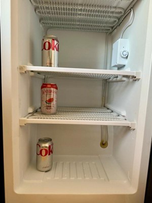 [This review was collected as part of a promotion.] I was super happy with this product. Definitely a lot more room than I thought it would be with three shelves. It makes a perfect freezer for the extra storage space. We are using it as a glass freezer to put next to our kegerator. It took no time at all for that to chill all the glasses to a perfect temperature even some space to put some frozen candy bars to go with your beer cannot ask for a better freezer.  love the fact that the temperature knobs on the inside, so no little children can mess with it. Love the stainless steel look with the black sides. Doesn’t take up space but has a lot of space on the inside.