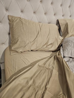 CGK Linens 100% Cotton 400 Thread Count 4 Piece Sheet Set - Soft & Cozy Sateen Bed Sheets in Beige, Size Queen