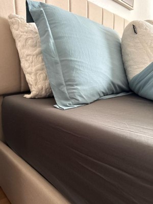 [This review was collected as part of a promotion.] What i like the most about these sheets is the color. is it a little bit on the dark side of grey. the material is comfy and fits the mattress nice. i have had sheets from this brand before and the only downside is side is it does stain easy