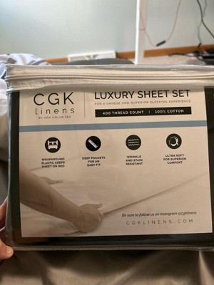 [This review was collected as part of a promotion.] I received the CGK linens luxury sheet set in the Queen Cotton Dark Grey. The sheets feel soft. I followed the wash instructions to avoid the wrinkles but that didn’t seem to work for me. The sheet set came with information that product maybe prone to wrinkles. This is not a big concern for me as the sheets are soft and remained on the mattress due to deeper pockets.
