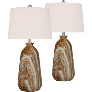 360 Lighting Carlton Modern Table Lamps 28" Tall Set of 2 Swirling Brown Faux Marble White Tapered Drum for Bedroom Living Room Bedside Nightstand