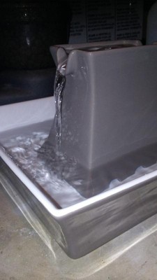 [This review was collected as part of a promotion.] It was packaged well, and the reason I wanted ceramic is because I believe I can get the calcium deposits off the smooth edges. I love the filter that goes around the pump itself so that the filter doesn’t clog with slim/fuz/hair (unlike other fountains that don’t have the filter). Easy to fill with water. I like the fact that IF the electricity goes out that our dogs can still drink water from the reservoir (unlike other fountains). It’s a new toy to my dogs, so I’m sure it won’t take long and my dogs will stop playing in the reservoir. Cleaning – a MUST is completely opening up the pump itself and clean it (with a q-tip) is very important. I think the only bad part about this fountain is that it is heavy and after adding water, it’s even heavier when you go to lift it to take it to the sink to wash it. I haven't had it long but think i'll continue to enjoy it.
