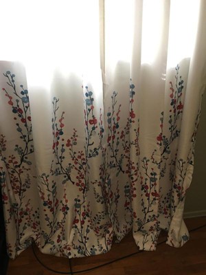 [This review was collected as part of a promotion.] I am usually a fan of just one color curtain panels with no design whatsoever, but I had to make an exception as soon as I saw these Mirabelle Watercolor Floral room darkening window panels. These are the perfect length to go from the top of my windows to just barely touching the floor - which is what I love about them. When they say "room darkening", they are not joking. Close these panels over the window when the sun is flooding a room, and you will swear that it's night time because these panels do their job so well. The color and design are nothing short of gorgeous. I cannot say enough about these, I absolutely love them!