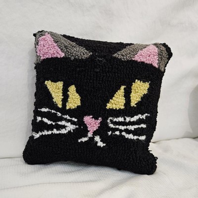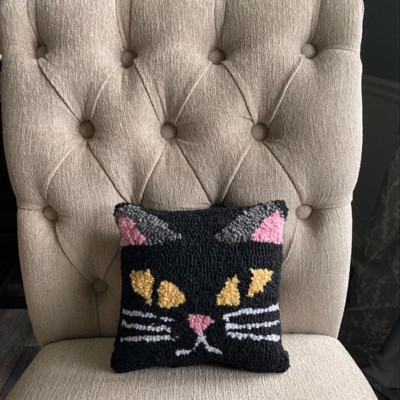 C&F Home Black Cat Small Petite Hooked Halloween Accent Pillow, 8" x 8"