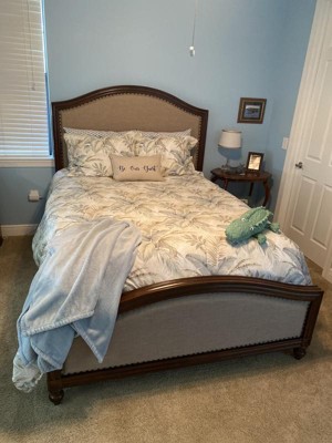 • The Baker's Bluff Comforter Features A Silver Blue Palm Leaf Motif On An Ivory Ground