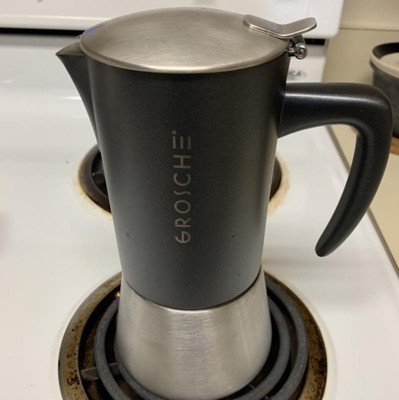 A premium stainless steel stovetop espresso maker and Moka pot to brew rich espresso at home. The GROSCHE Milano Stainless Steel Moka pot brews on all stove tops including electric, gas, coil, induction and camping. Our Milano Stovetop espresso makers are very popular! And customers have been asking us to make a stainless steel version of them. Welcome - Milano Steel! The Milano Steel is a Stainless Steel Stovetop espresso maker that you will feel the quality the moment you hold it in your hands. The brushed steel finish on the heavy gauge steel bottom, the subtle curves of the handle and smooth pour spout, and the matte black stainless steel finish on the all stainless steel body make this a classic and stylish way to make coffee in a stainless steel Moka pot. Strong and thick stainless steel will never break and makes this a very durable Moka pot designed for many years of use. It is also dishwasher safe. One of the most important parts of a Moka pot is the safety valve, and every Milano Steel Moka Espresso maker uses a Certified safety valve, made in Italy. This is a well-made home espresso percolator for your stove top to brew espresso at home easily. Many people prefer a stainless steel coffee maker over an aluminum Moka pot. Making espresso at home is easy with a stove top espresso maker. Simply add water into the bottom boiler chamber up to the safety valve, place the coffee funnel on the boiler and fill with find ground coffee. Assemble it and place it on your stove top for around 5 minutes. Delicious Italian style Moka espresso coffee is ready! Its a classic and time and tested way to make espresso at home. And once you've figured out your favorite coffee blend, grind, and heat level on your stove, you will never go back to any other way of brewing coffee! Every GROSCHE product sold funds 50+ days of safe drinking water to people in need via the GROSCHE Safe Water project. By choosing GROSCHE youre making a positive difference in someone's life. Hence the GROSCHE brand mission: Every Cup Fills Another.