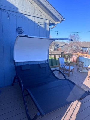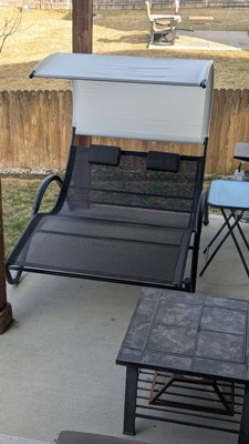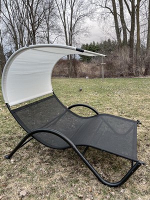 Outdoor Double Chaise Lounge Chair Rocking Bed with Sun Shade & Wheels - Black - Crestlive Products: UV-Resistant, Steel Frame Patio Furniture