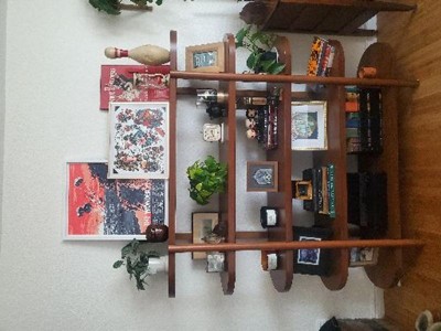 - 5 open shelves for displaying books, souvenirs, potted plants or photo frames