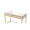 Be a girl boss with the Canine writing desk. This gorgeous smoky mirrored desk with beveled edges with a champagne finish base is the ideal desk for creating a contemporary office space. The mirrored case and top reflect light and will make your room appear larger. This desk features a drawer to keep all your supplies close.