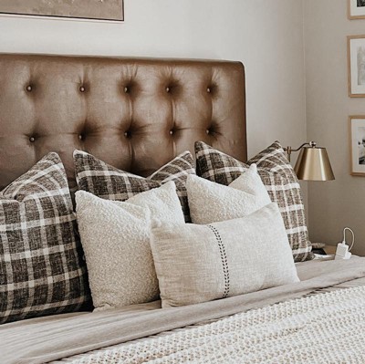 The details, neutral tones and texture of these throw pillows are truly STUNNING and are exactly what our bedding needed!!!!