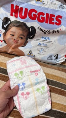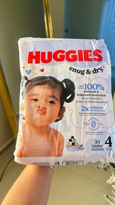 Parenting might be hard, but thanks to Huggies Snug & Dry Baby Diapers, diapering doesn’t have to be. As the only leading brand that is entirely fragrance free,* Snug & Dry newborn diapers are made to be free of fragrances, added lotions, parabens and natural rubber latex. When it comes to keeping your baby dry, Snug & Dry diapers are there for you even in messy situations. Our Snug & Dry infant diapers are up to 100% leak proof, even from blowouts. Made with the original Leak Lock blowout blocker, Snug & Dry baby diapers help protect against blowouts and ensuing messes. Additionally, these diapers are designed with a curved and stretchy fit for outstanding leakage protection. Made to help your baby live their best life, our infant diapers feature 2X comfort design to provide outstanding softness and gentle protection. An added wetness indicator changes colors when the diaper is wet, allowing you to know right when the diaper needs to be changed. Featuring exclusive Disney designs, Huggies Snug & Dry Diapers are available in size Newborn (6-9 lb.), size 1 (8-14 lb.), size 2 (12-18 lb.), size 3 (16-28 lb.), size 4 (22-37 lb.), size 5 (27+ lb.), size 6 (35+ lb.), size 7 (41+ lb.) and size 8 (46+ lb.). (*among leading national diaper brands, across all offered variants) (**among branded open diapers. Excludes preemie size.)