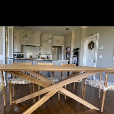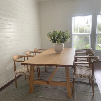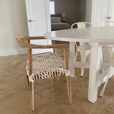 These chairs are so gorgeous! I’m thrilled. They’re comfortable and you can tell they’re well made. Note, however, the wood is unfinished, so I did have to use a clear, non gloss, finish because I wanted to keep the matte look, but protect them from wet or greasy hands. I added the matching chairs without arms for the side chairs. Thank you! I’m so thrilled with my new dining area.