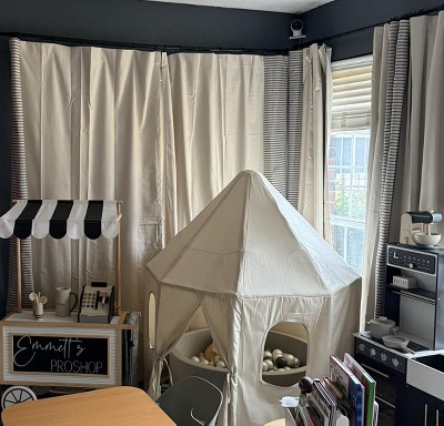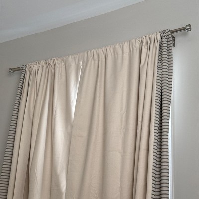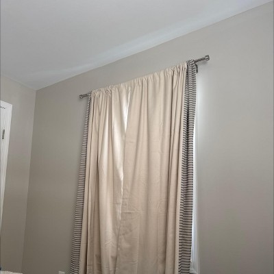Look so nice and expensive and truly are black out! The stripe detailing makes them look less boring and adds a fun dimension to our play room! We hung ours with curtain pins and rings.