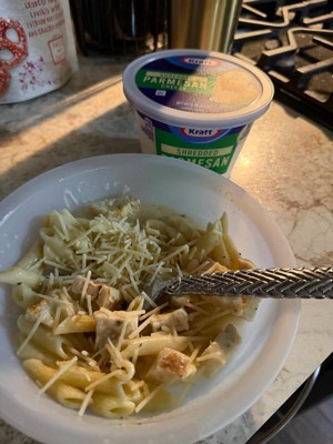 [This review was collected as part of a promotion.] Delicious Parmesan cheese that’s perfect for pasta or any dish! Flavorful and doesn’t taste fake. Love that it’s in a tub rather than a bag or container.