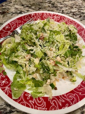 [This review was collected as part of a promotion.] This is the best type of Parmesan for Caesar salad in my opinion. I dislike grated cheese on my salad but I don't want shaved pieces either (I know I'm picky lol). This here comes finely shredded so yiu get the distinct Caesar flavors without weird textures. It doesn't stick, so easily to evenly sprinkle over food. The packaging is easy to access, with the simple lid. Would definitely purchase again!