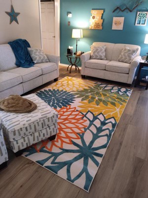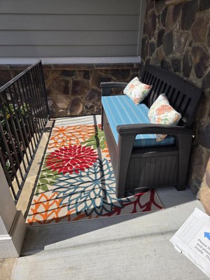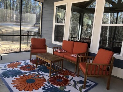 This rug has received high praise for its vibrant colors, quality, and ability to enhance various spaces, from patios to living rooms. Guests appreciate its durability and ease of cleaning, making it a practical choice for both indoor and outdoor use. Many have noted how it brightens up their areas and complements their decor beautifully. However, some guests mentioned the need for rug padding and concerns about its thickness.