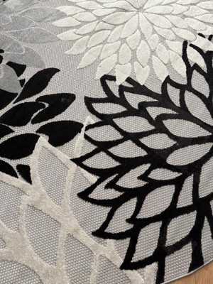 Nourison Aloha Floral 2'8" x 4' Black White Tropical Indoor/Outdoor Area Rug