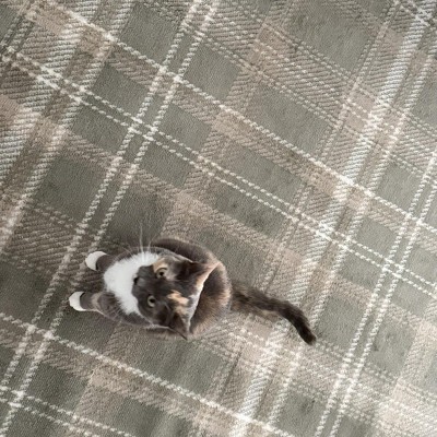 Lovely tartan rug. The colors are perfectly muted. The size is great for the price ($80) and the material is soft enough although could be better but for the price it’s good. My cat loves it. It didn’t smell too much either. Not itchy but soft. Haven’t had to clean it yet so not sure how easy it is to clean but it seems like it would be fine.